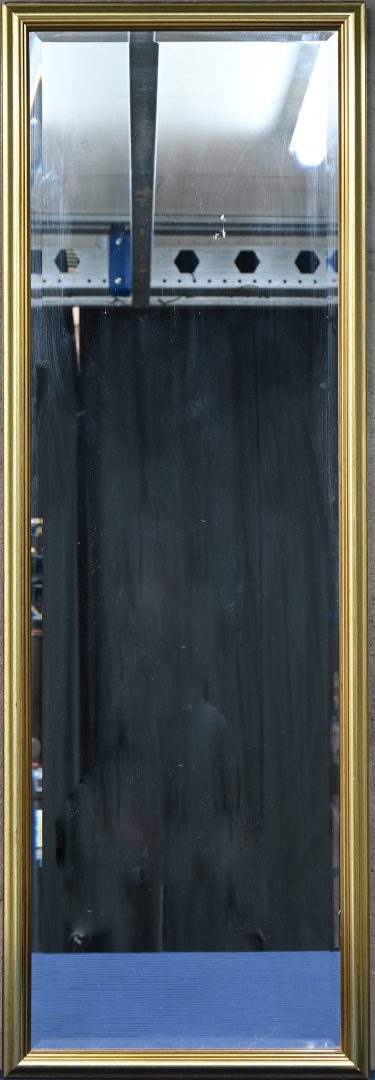 Een geslepen spiegel in goudkleurige kader.