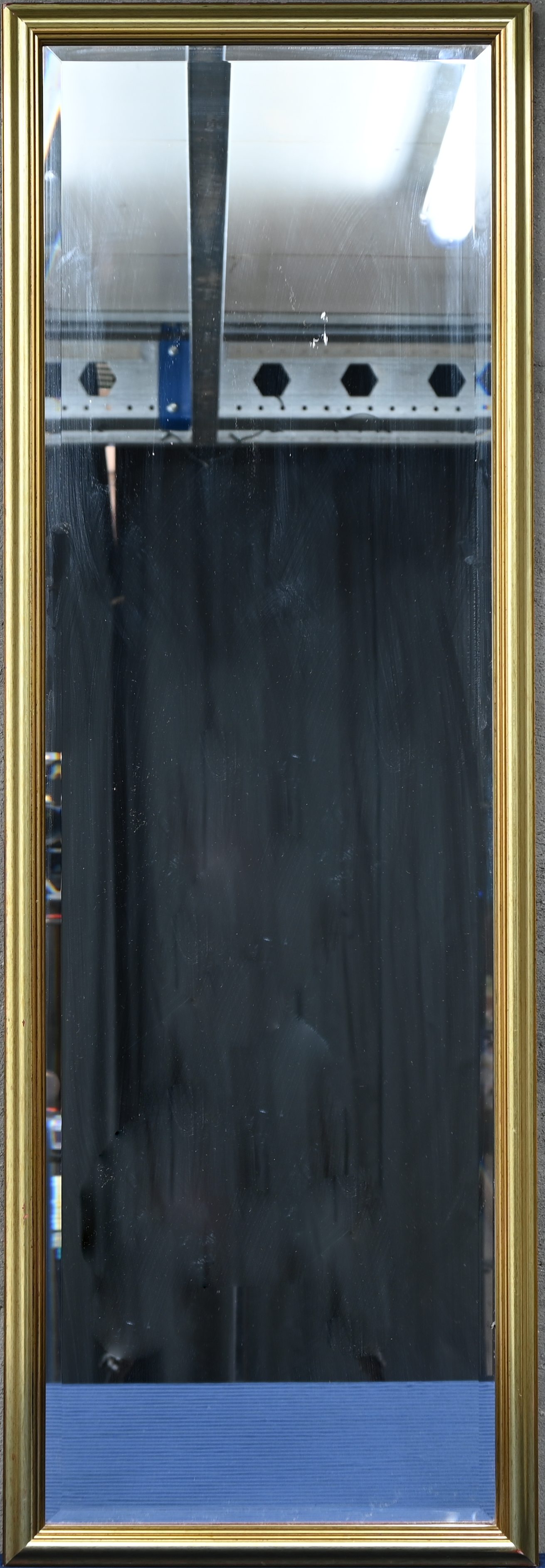 A cut mirror in a gold-colored frame.