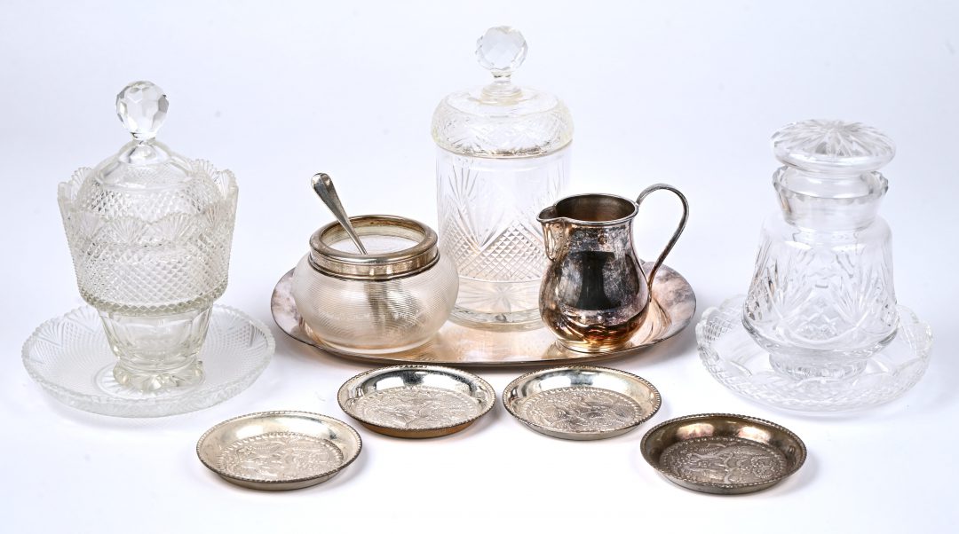 Een gevarieerd lot met kristal, glas en verzilverd metaal.