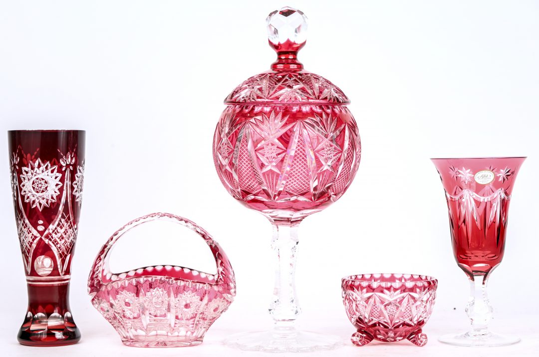 #539Een grote Hongaars kristallen coupe, rood in de massa gekleurd.