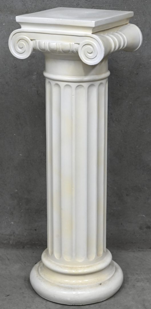 Een gipsen piëdestal gevormd als een Ionische zuil.