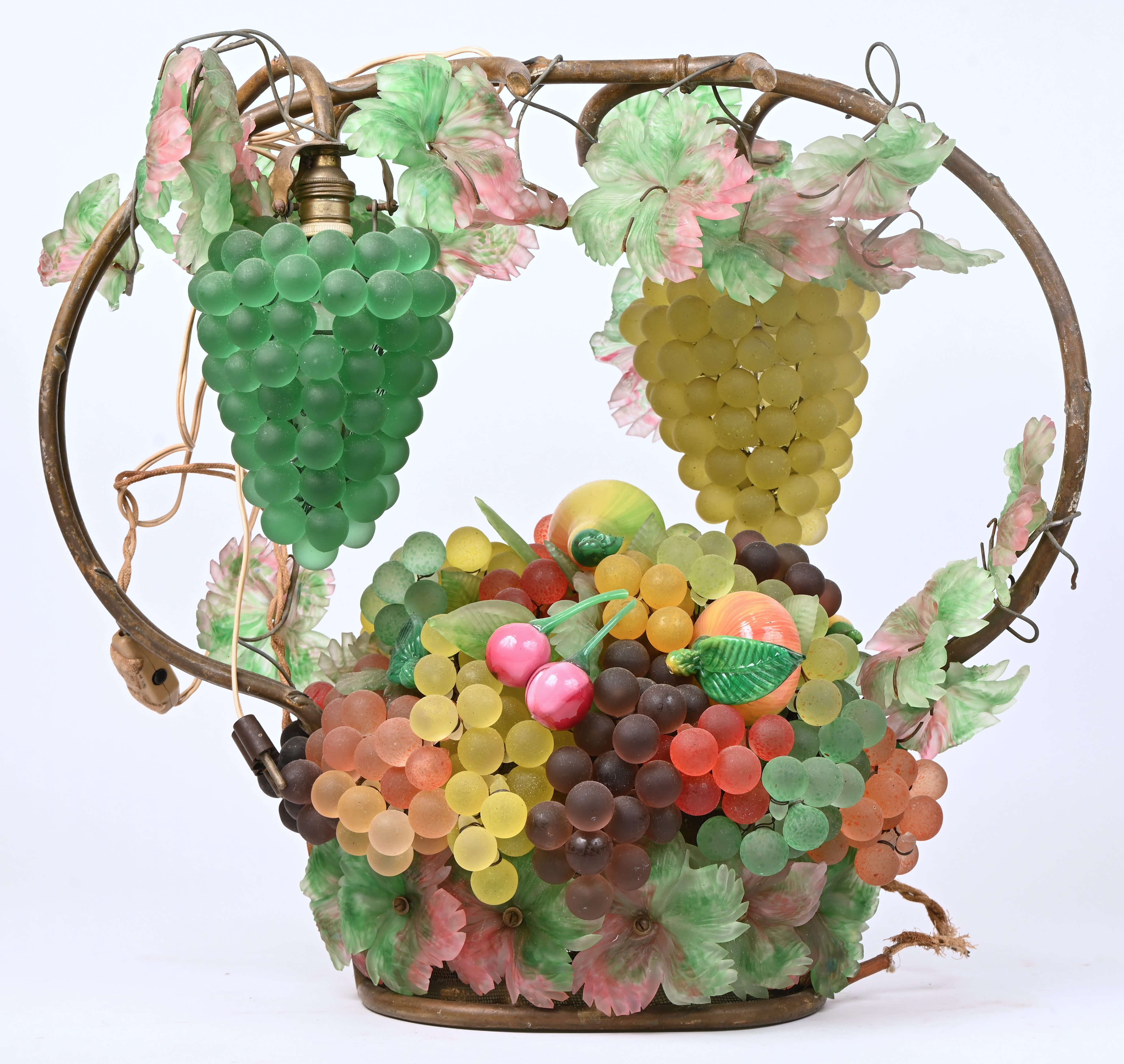 A glass paste lamp in the form of a very elaborate bunch of grapes in a basket. Murano, 1950s.