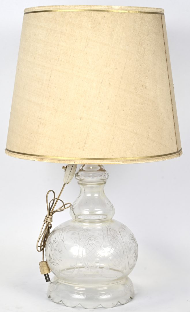 Een glazen lampenvoet met een geslepen decor. Begin XXste eeuw.