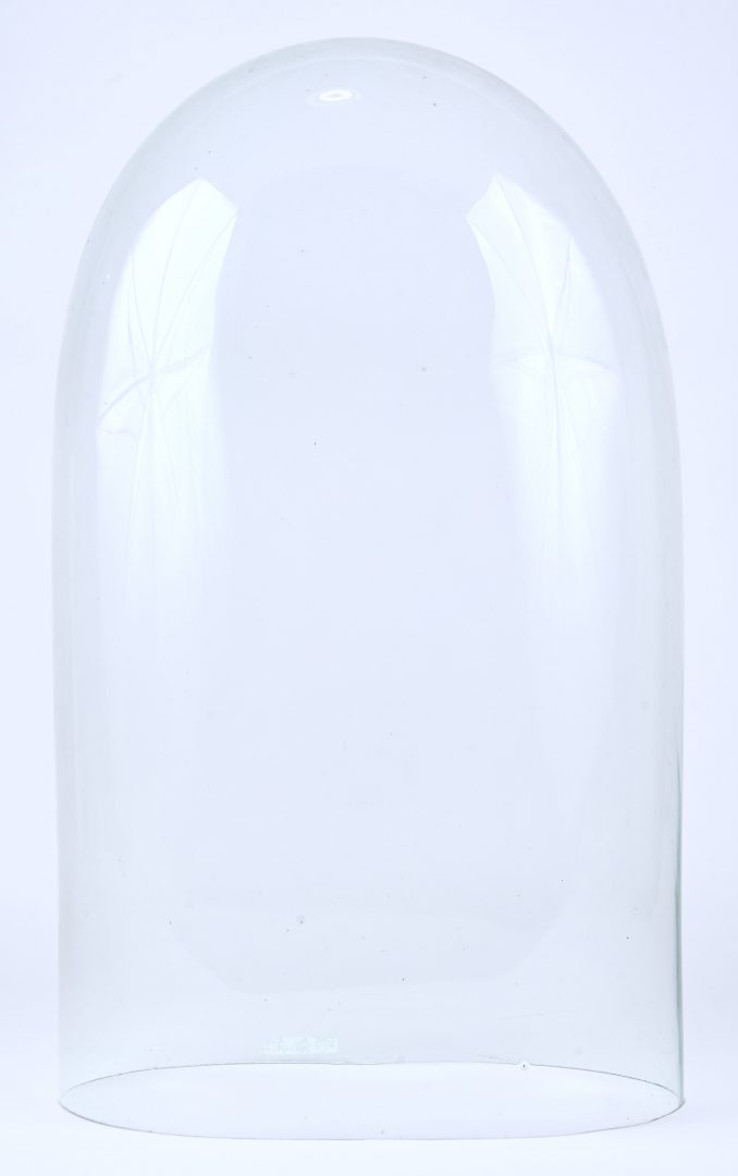 A large antique glass dome, oval, without pedestal. Flaking at the bottom.