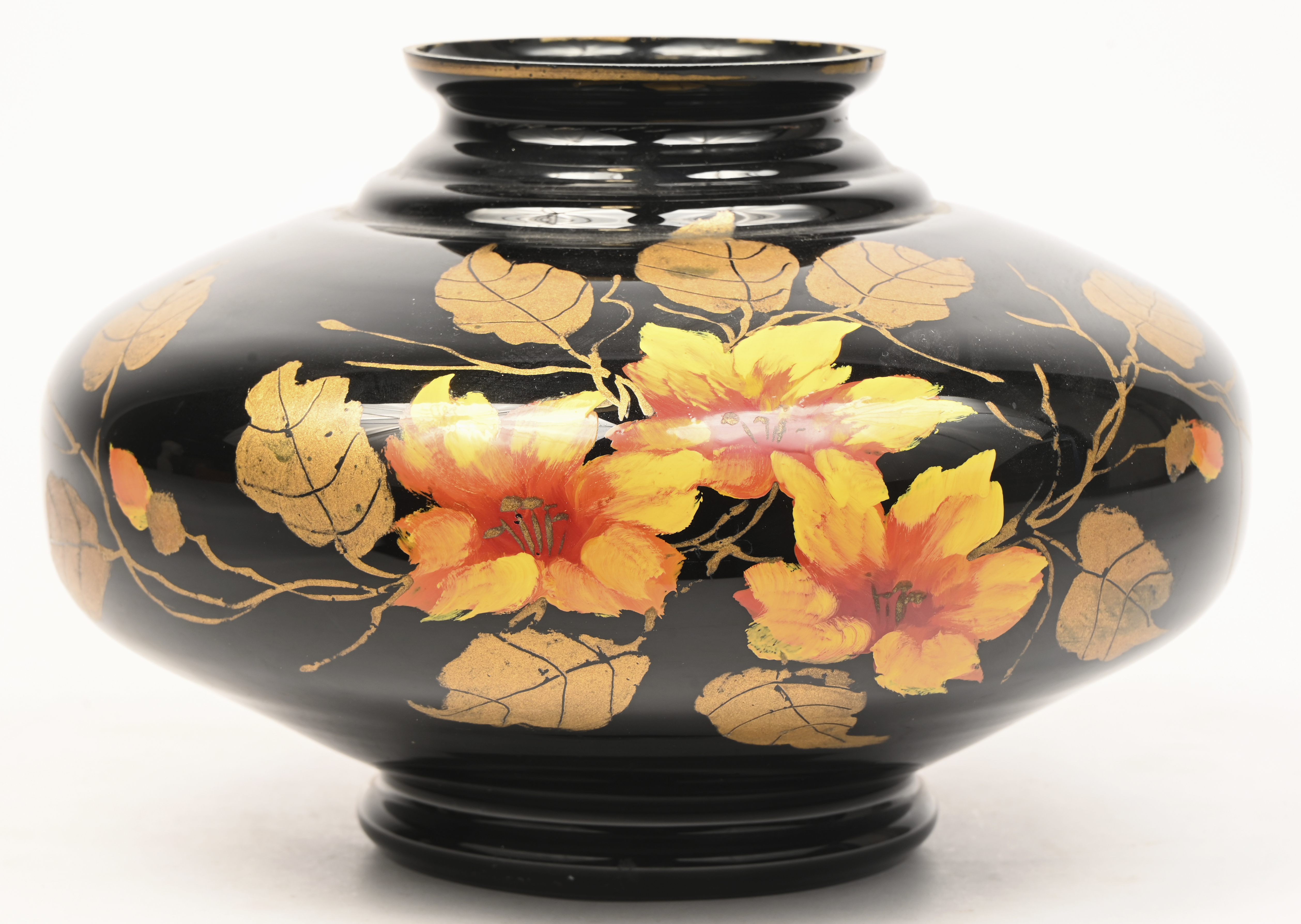 A blue porcelain, vintage Italian table lamp with a glass shade. Decorated with plant motifs and marked at the base.No longer availableDim. h 48 x Ø 44 cmEstimate: € 80 / 120 -