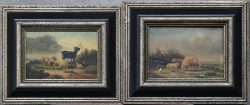 #149Een lot van 2 schilderijtjes met boerderijdieren, olieverf op paneel, naar Verboeckhoven.