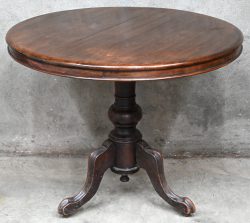 #86Een massief eikenhouten vignerontafel op centrale driepoot.
