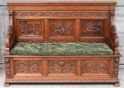#176Een gesculpteerde massief eikenhouten halbank, toegeschreven aan Horckmans van de Battelse Steenweg, vroeger de beste beeldhouwer van Mechelen.