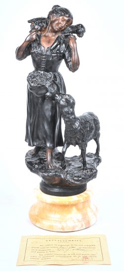 #168“Herderinnetje”, een bronzen beeld op marmeren sokkel, naar Moreau.