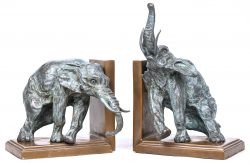 #158Een set van 2 bronzen boeksteunen in de vorm van olifanten.