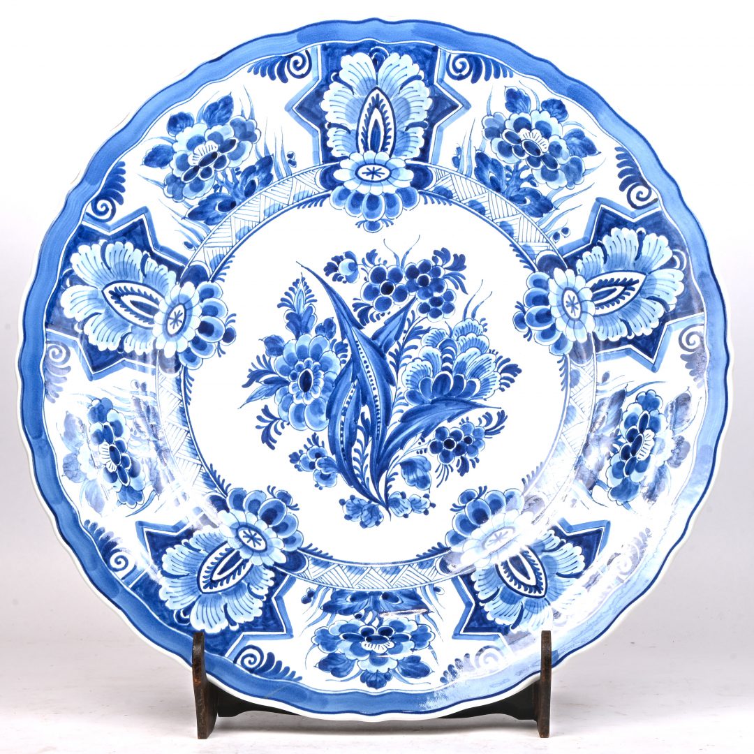 A tobacco jar of blue and white glazed Delft earthenware with a copper lid. Marked L P Kan (Lampetkan). -