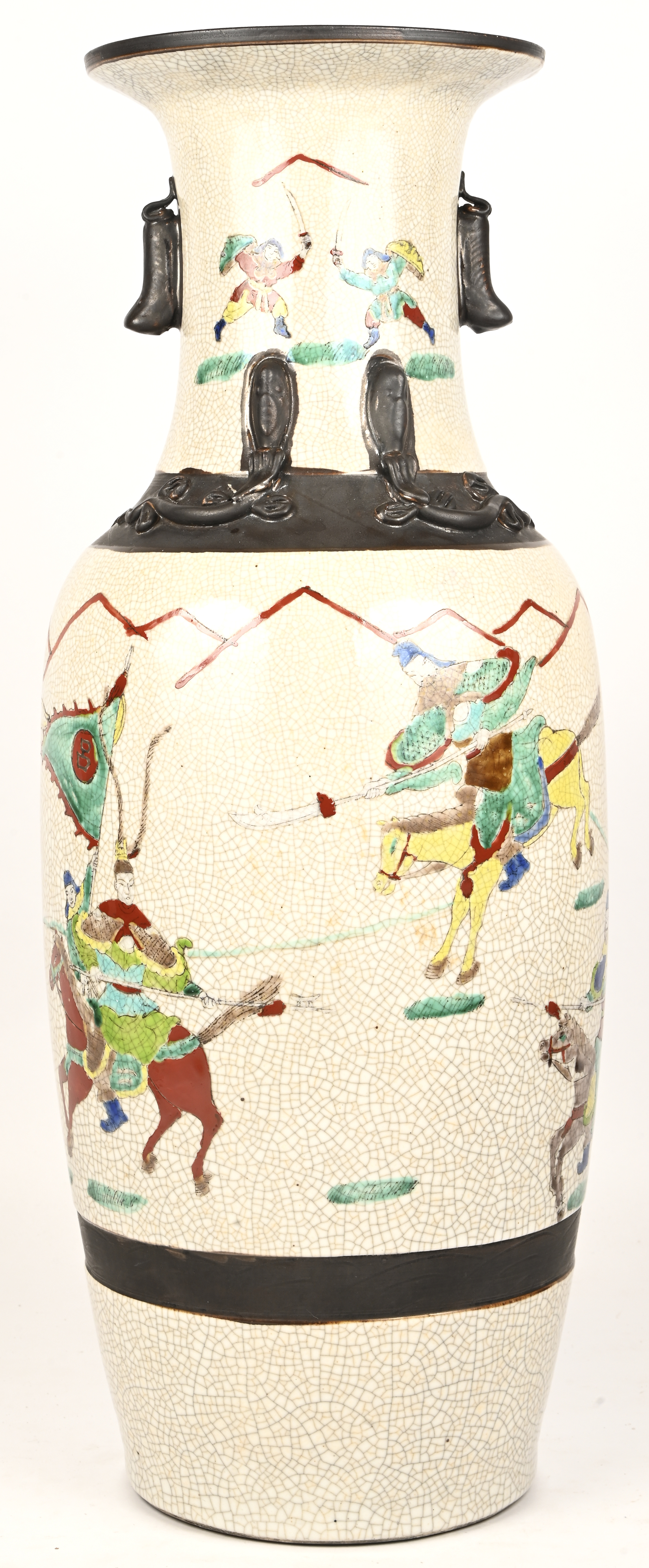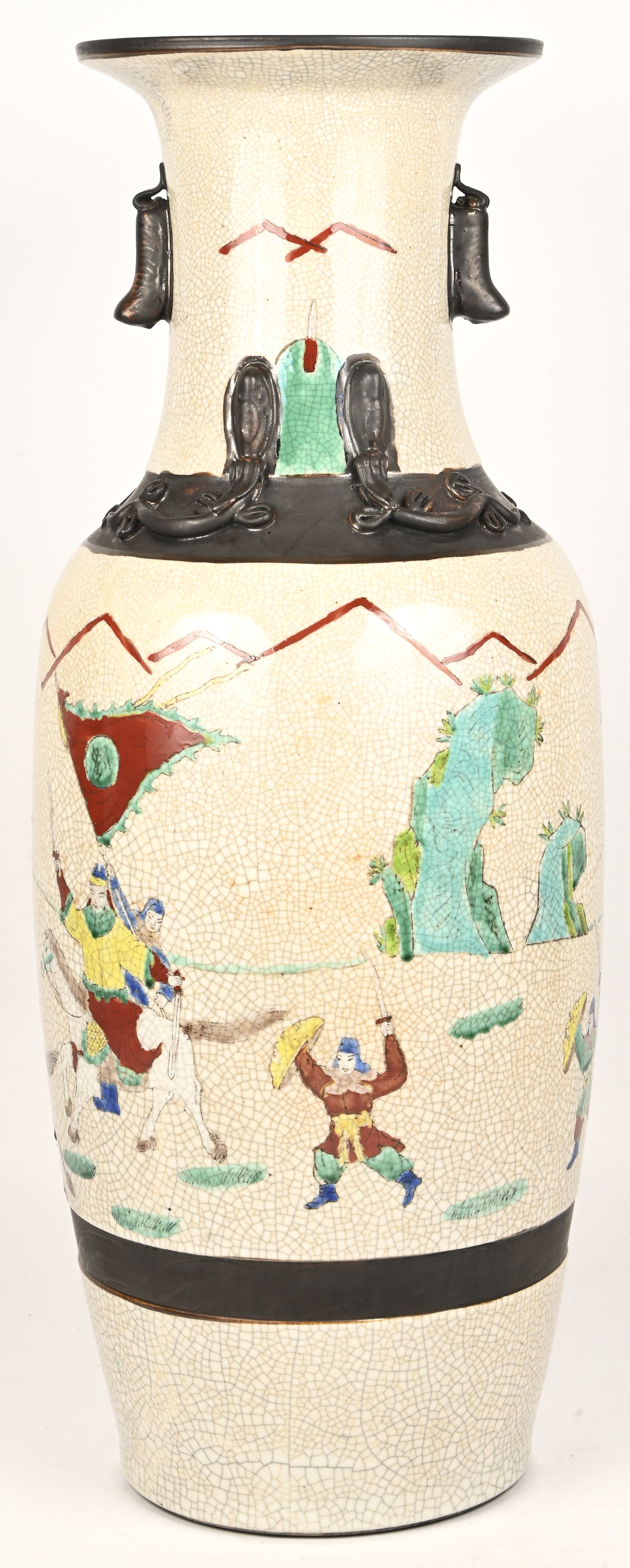 #8Een kraagvaas van meerkleurig Chinees porselein, famille rose. Onderaan gemerkt.
