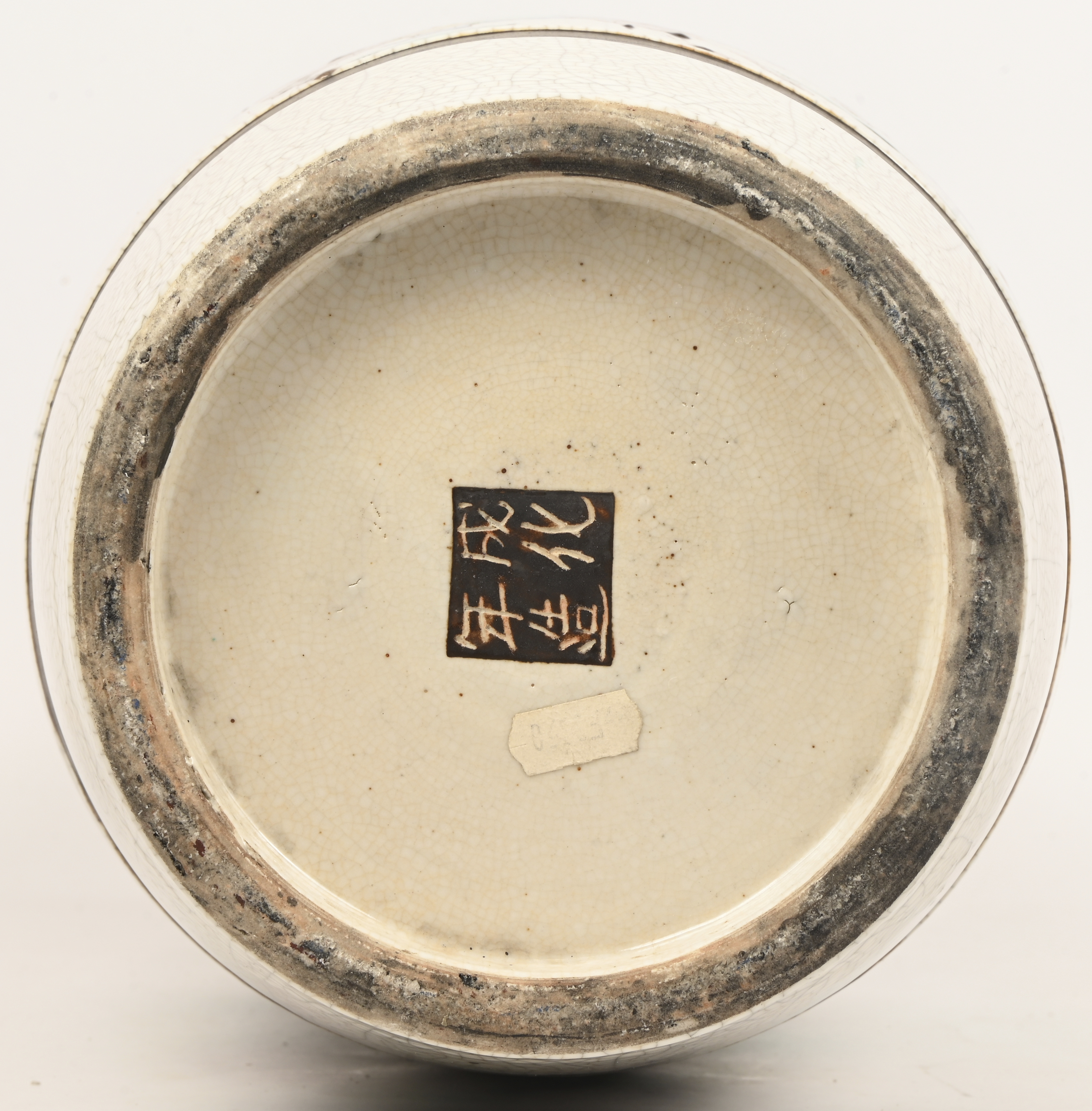 A collar vase made of multicolored Chinese porcelain, famille rose. Marked at the bottom. -