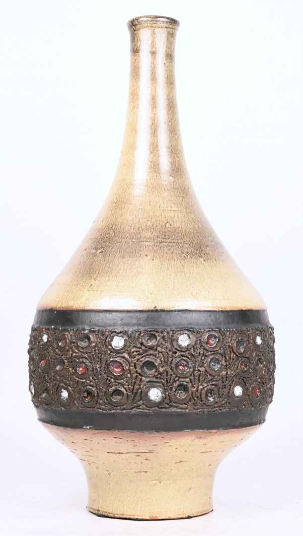 Een grote Perignem vaas van geglazuurd aardewerk. Met een beetje schilferschade aan de basis.