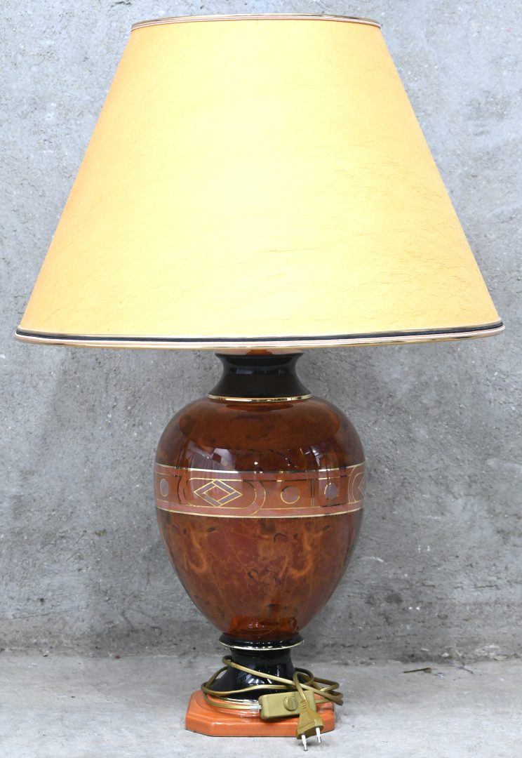#150Een tafellamp met voet in Chinese stijl, décor a la main. Faina en flora op zalmroze achtergrond.