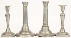 #67Twee paar tinnen kandelaars. Met een gezamelijk gewicht van 1,1 kg.
