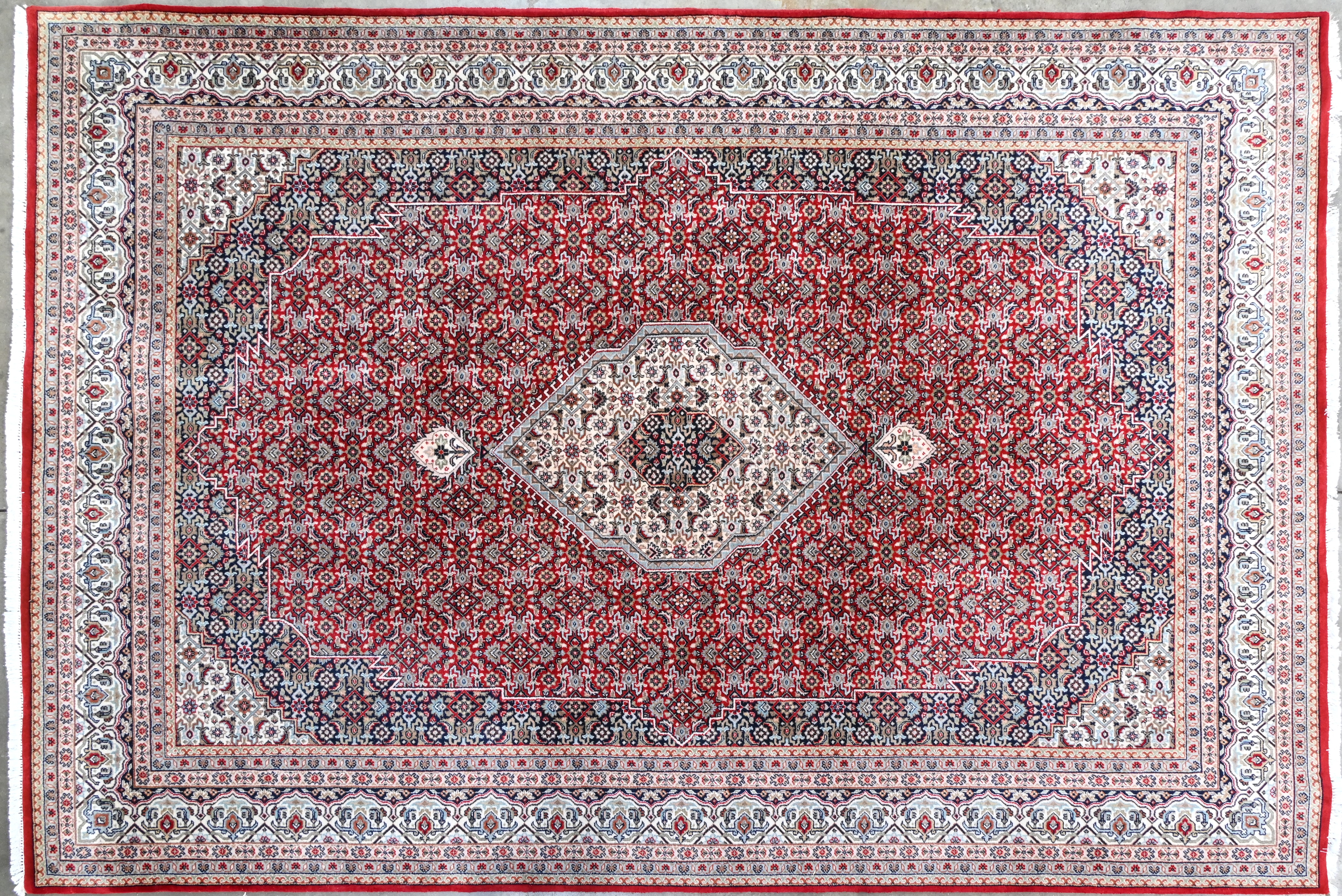 #406MeshedEen Perzisch handgeknoopt Meshed tapijtje met geometrisch decor.