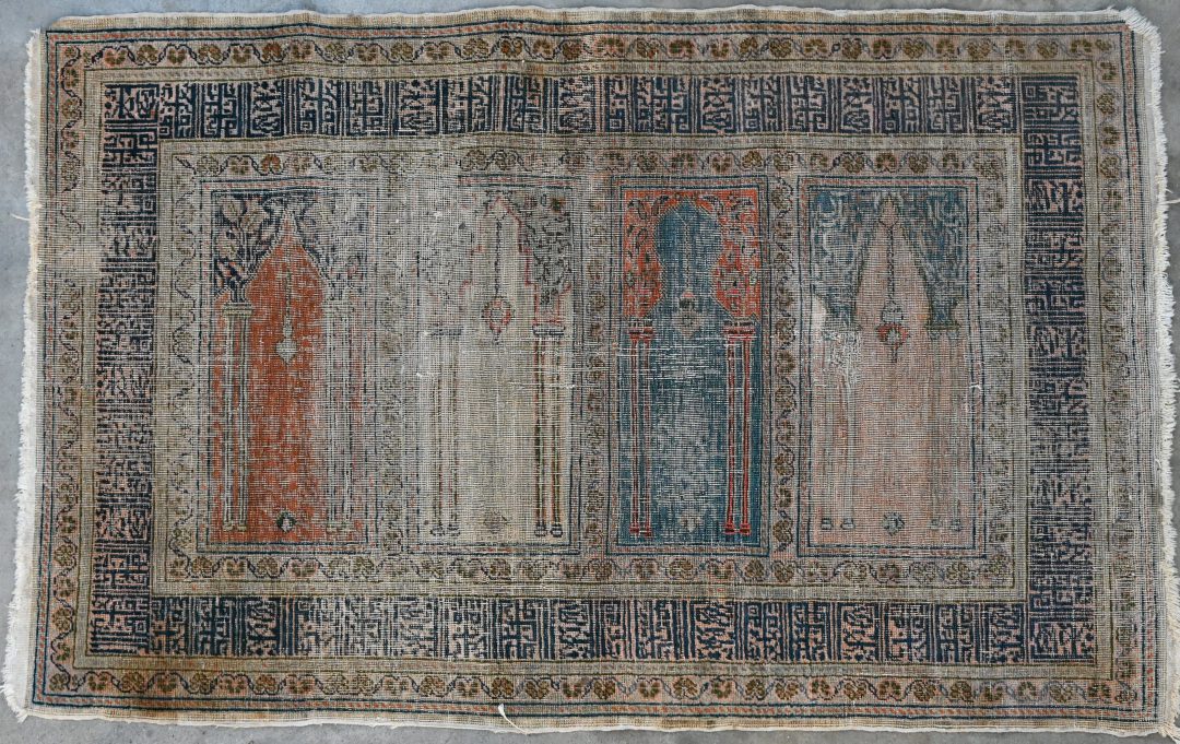 A hand-knotted oriental prayer rug. -