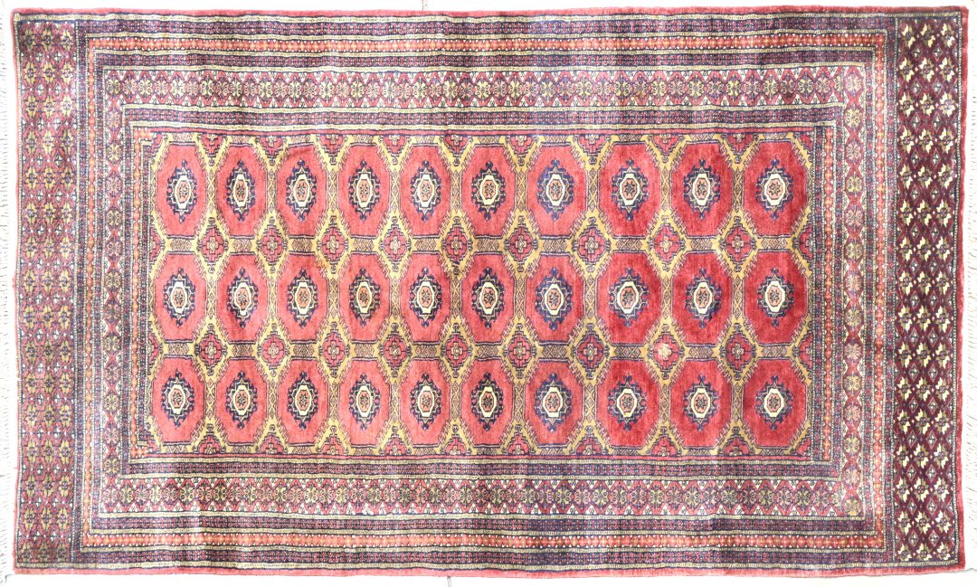 #406MeshedEen Perzisch handgeknoopt Meshed tapijtje met geometrisch decor.