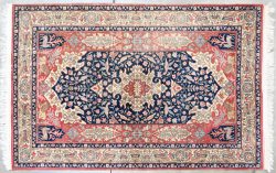 #406MeshedEen Perzisch handgeknoopt Meshed tapijtje met geometrisch decor.