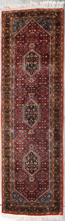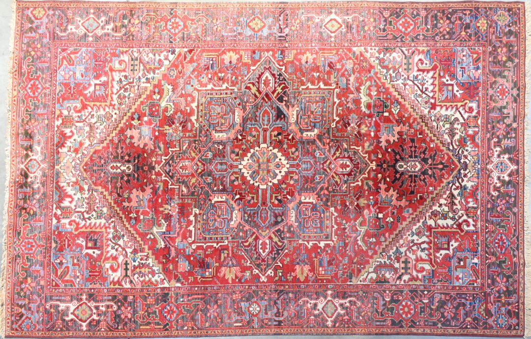 A hand-knotted oriental carpet with a design of hunters and exotic animals. -