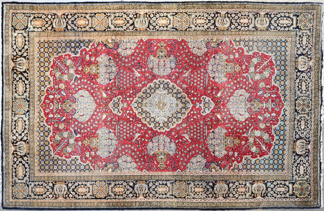 A Persian hand-knotted carpet with geometric design. -