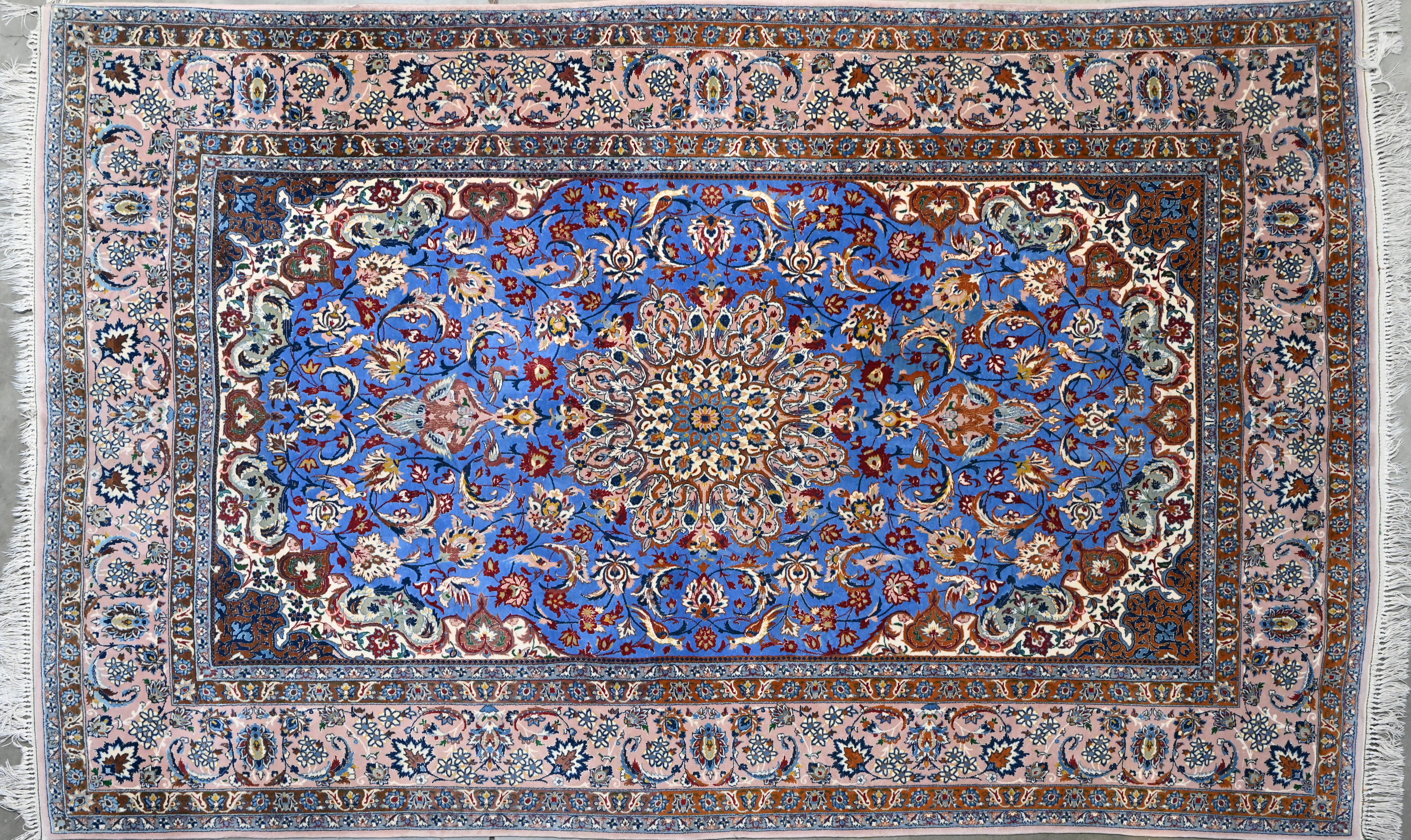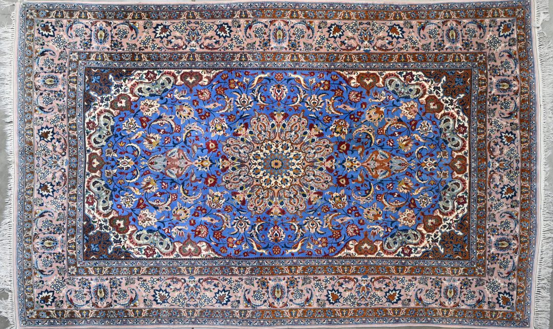 A hand-knotted oriental carpet with a design of hunters and exotic animals. -