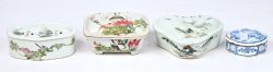 #408Een lot van 4 Chinees porseleinen schaaltjes met deksel waaronder één wierookbrander, 19e/20e eeuw.