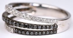 #130Een 18 kt witgouden ring met witte en zwarte briljanten met een gezamenlijk gewicht van 1,04 ct.