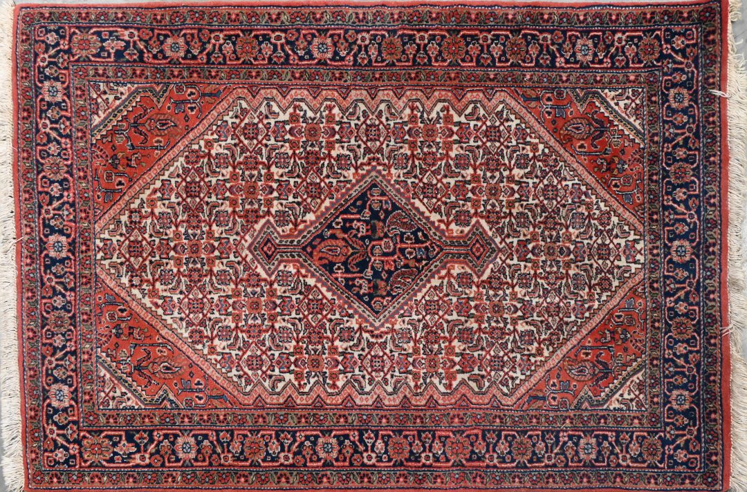 #437Een handgeknoopt Oosters tapijt met een decor van jagers en exotische dieren.
