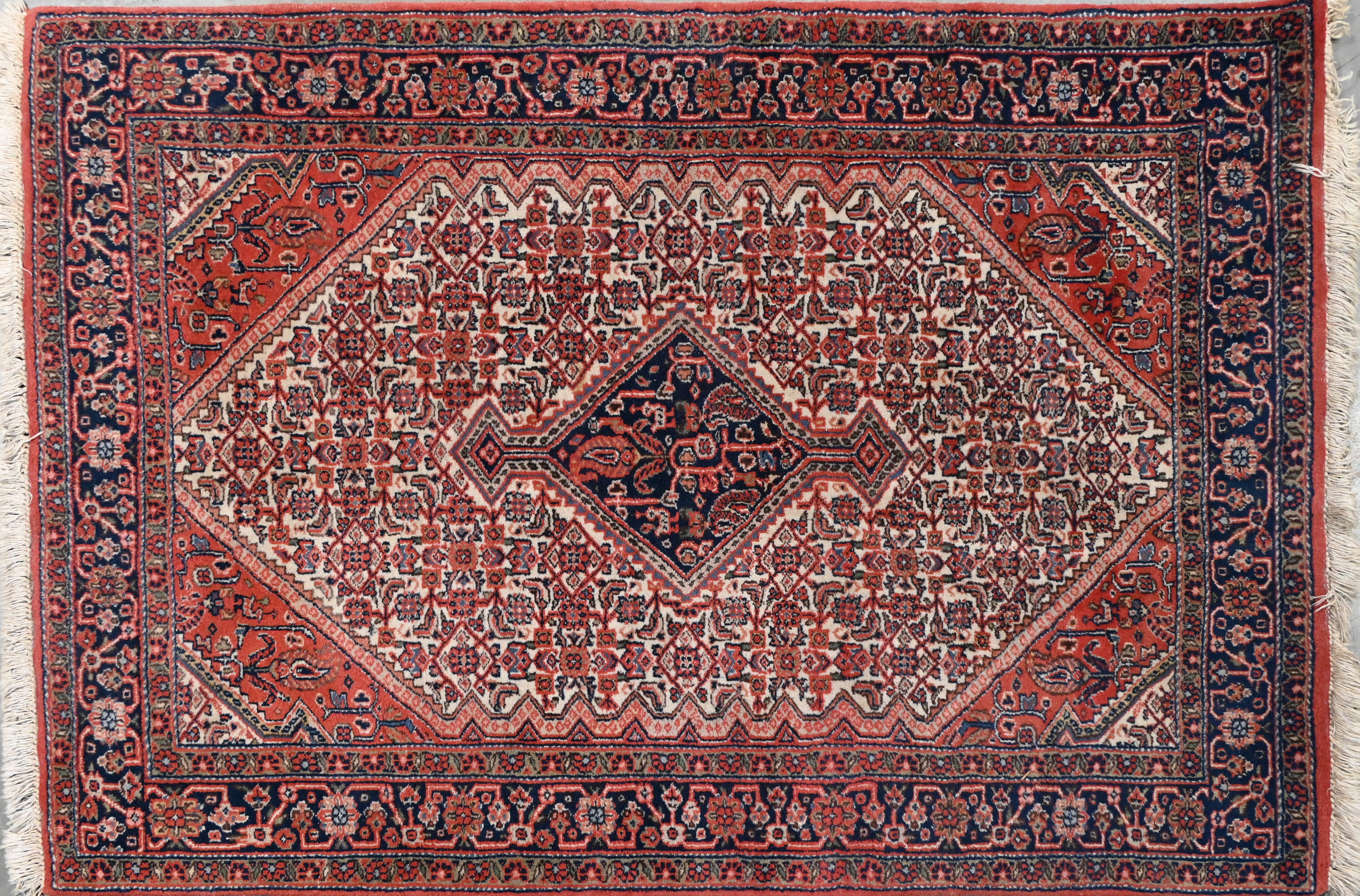 A hand-knotted oriental carpet with a design of hunters and exotic animals. -