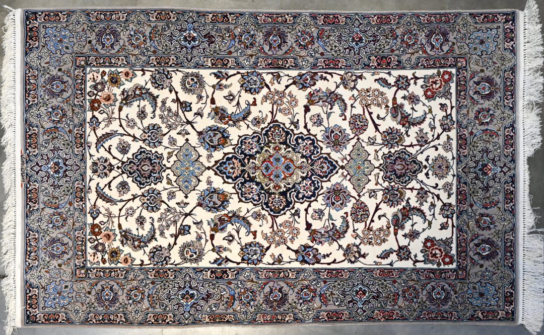 Een Iraans handgeknoopt zijden Ghoum tapijt.