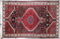 A Tunisian hand-knotted wool carpet with a geometric design. -