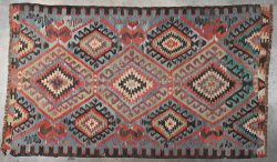 #289Een handgeknoopt Kelim tapijt, met veel schade.