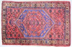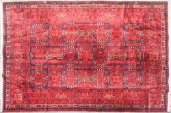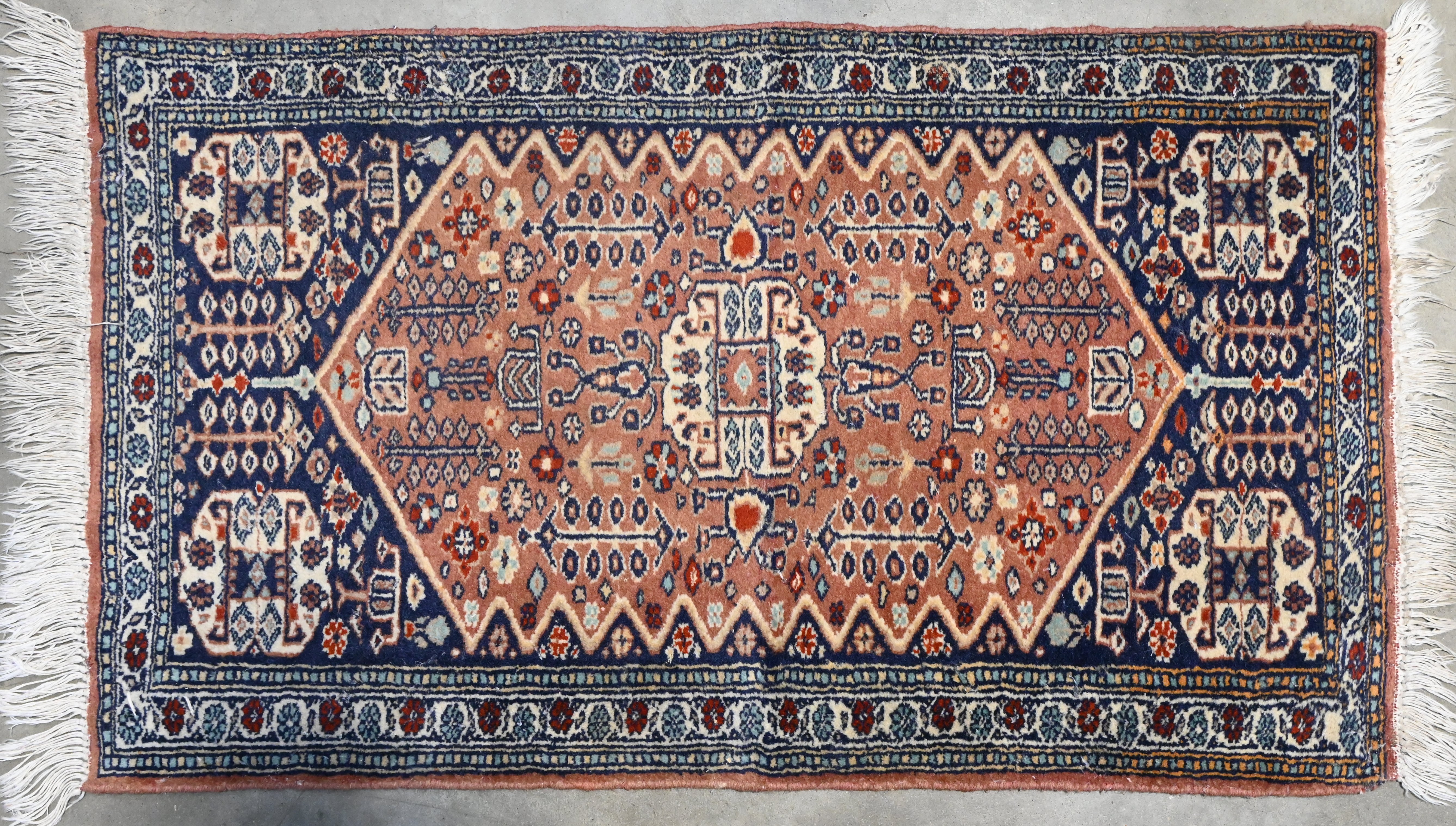#275Een Perzisch handgeknoopt tapijt met geometrisch decor. Kleine kale plek aan de rand (midden).