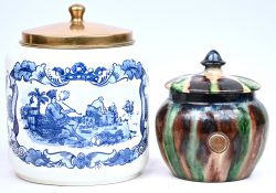 A lot of 2 tobacco jars, one in Flemish earthenware, the other Delft. -