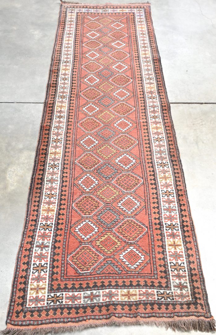 A hand-knotted Oriental runner, mixed silk and wool. -