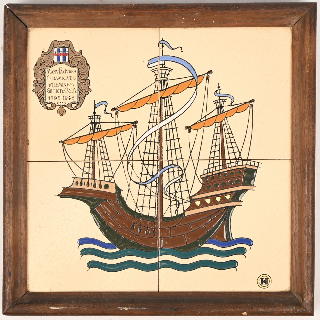 An earthenware coat of arms and a jug decorated with medieval characters.Online onlyDim. Hoogte 20 & 32 cmEstimate: € 20 / 30 -