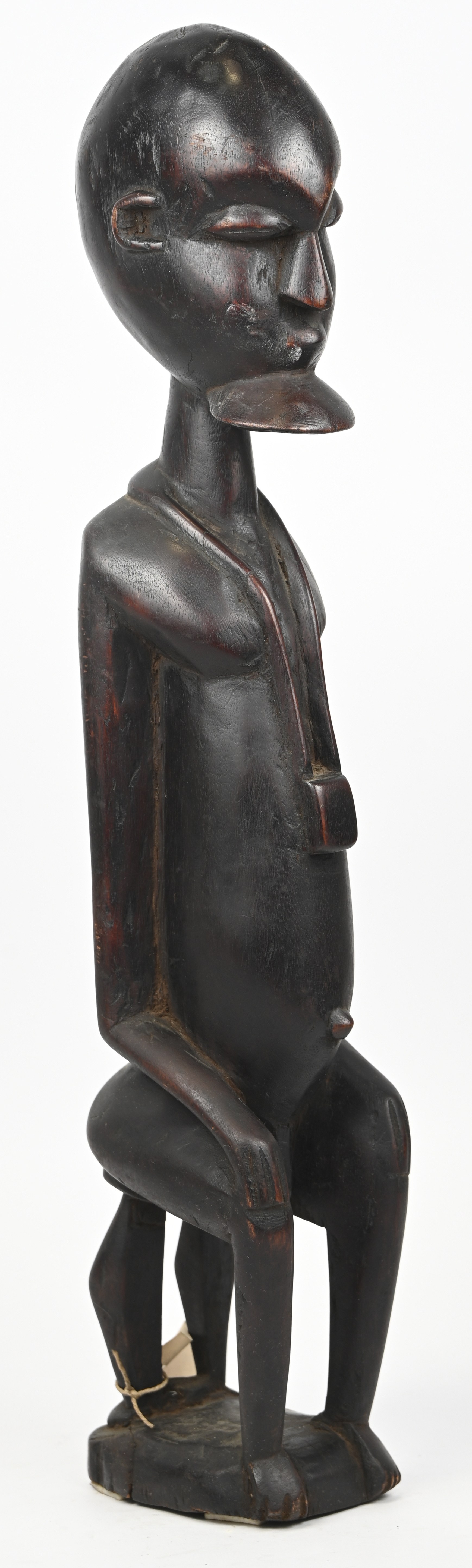 A wooden sculpture of a seated man with a beard, "Pegu." Bambara, Mali.