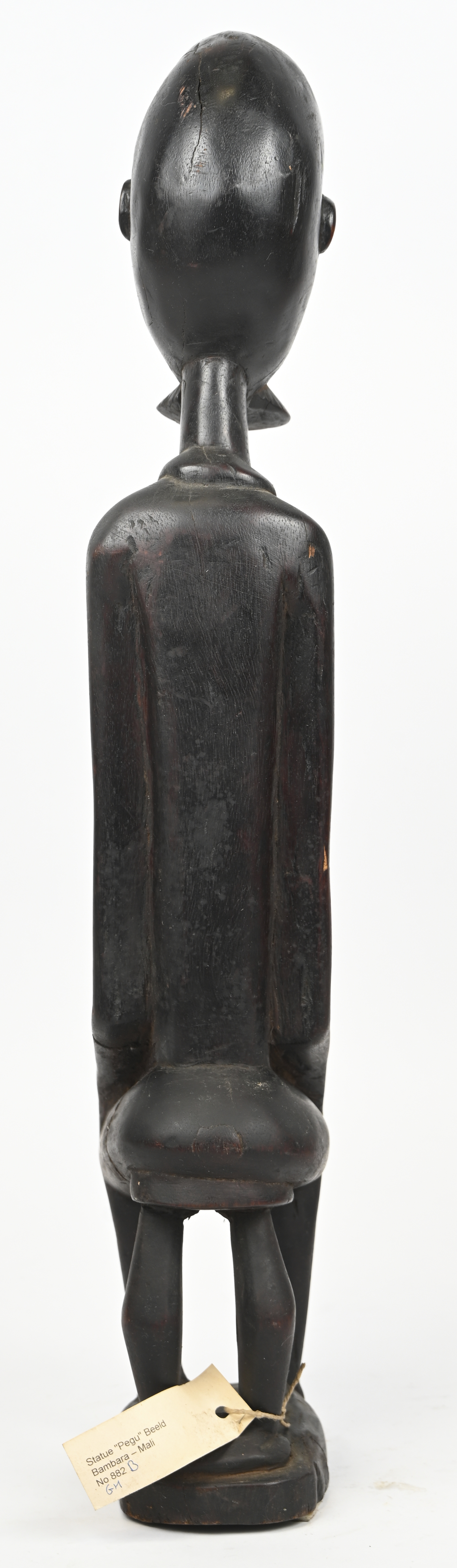 Een houten beeld van een zittende man met baard, “Pegu”. Bambara, Mali.