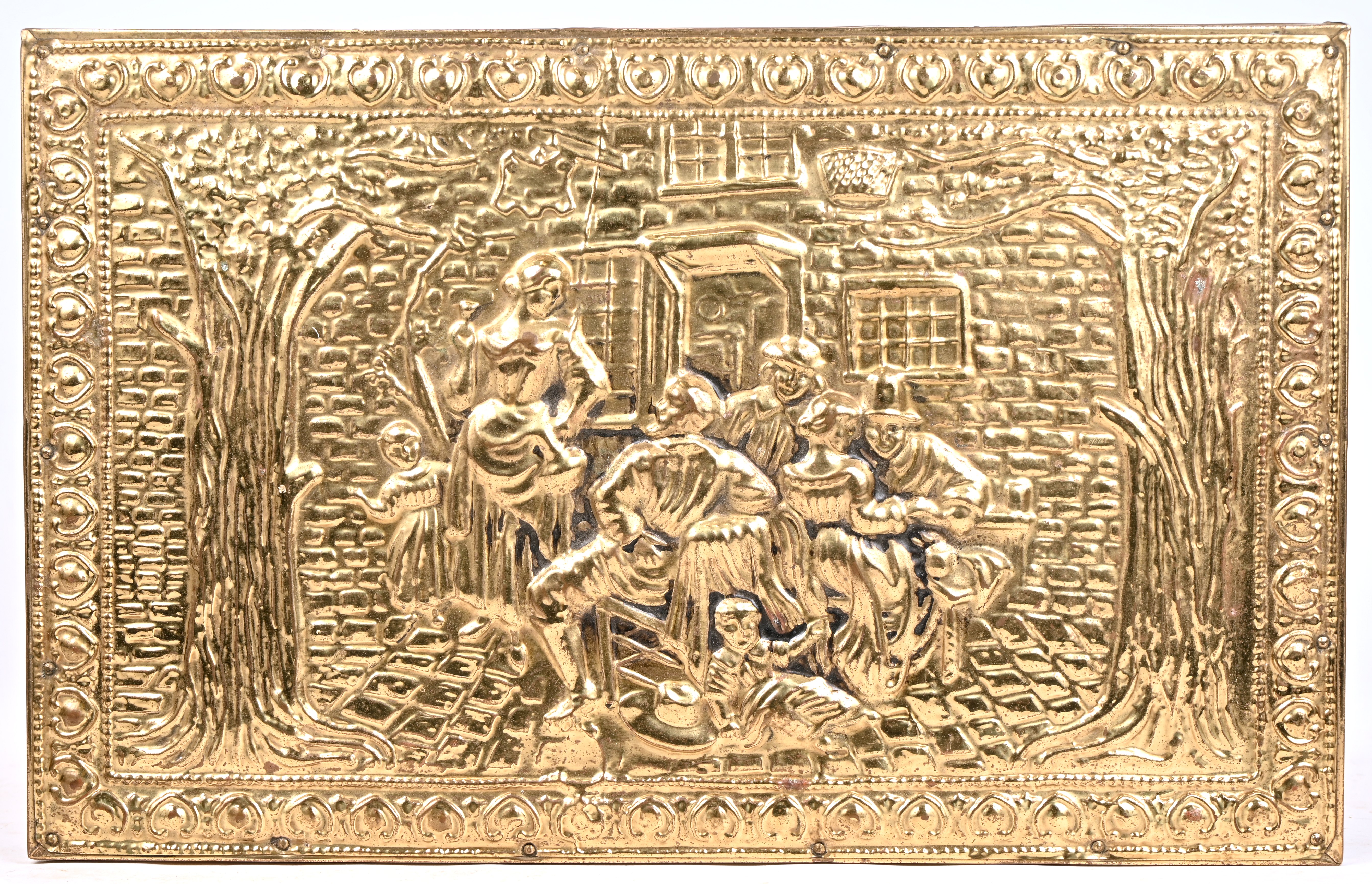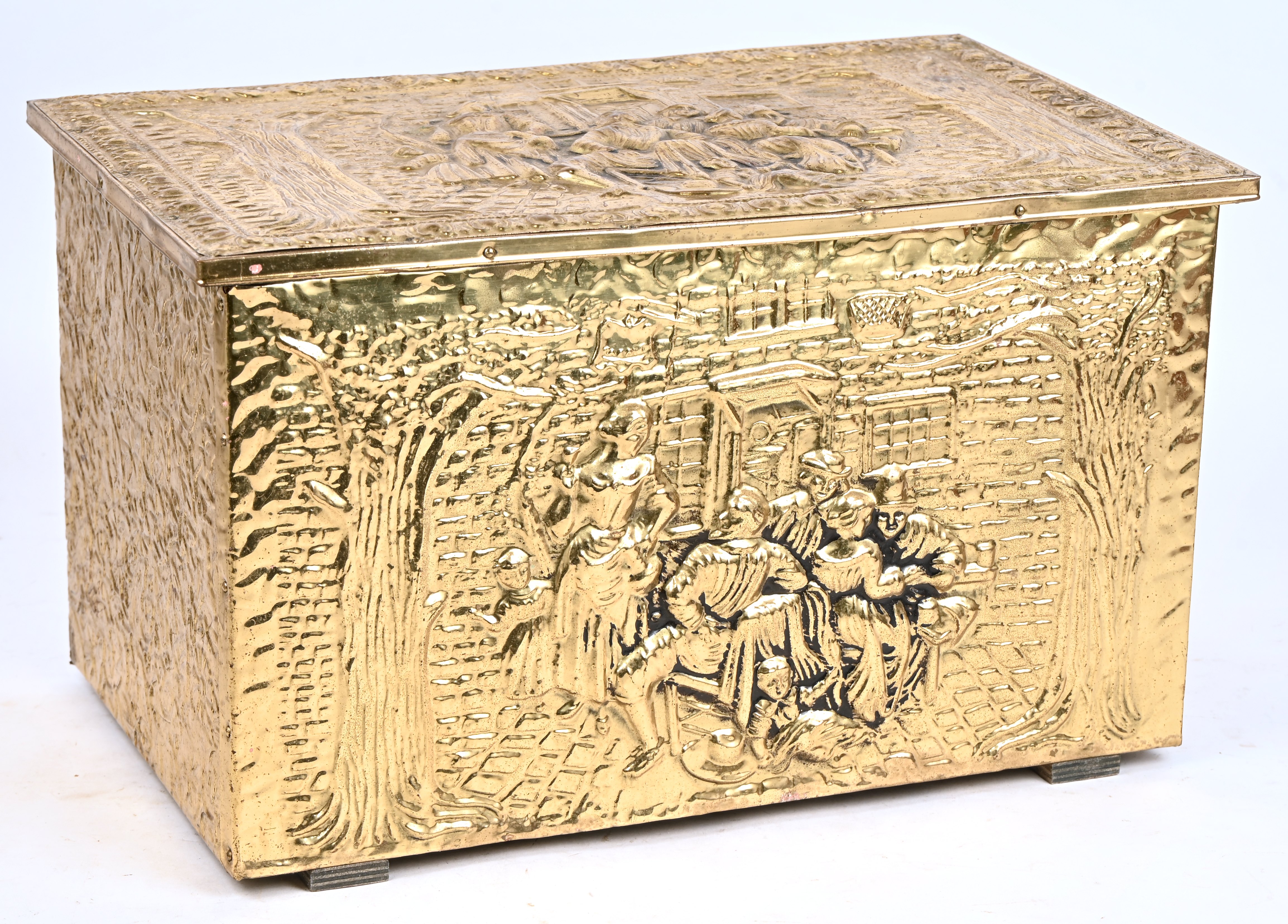 A wooden box lined with dinanderie.