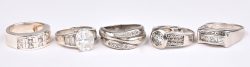 #105Vijf verschillende zilveren ringen bezet met fantasiestenen. 925‰.