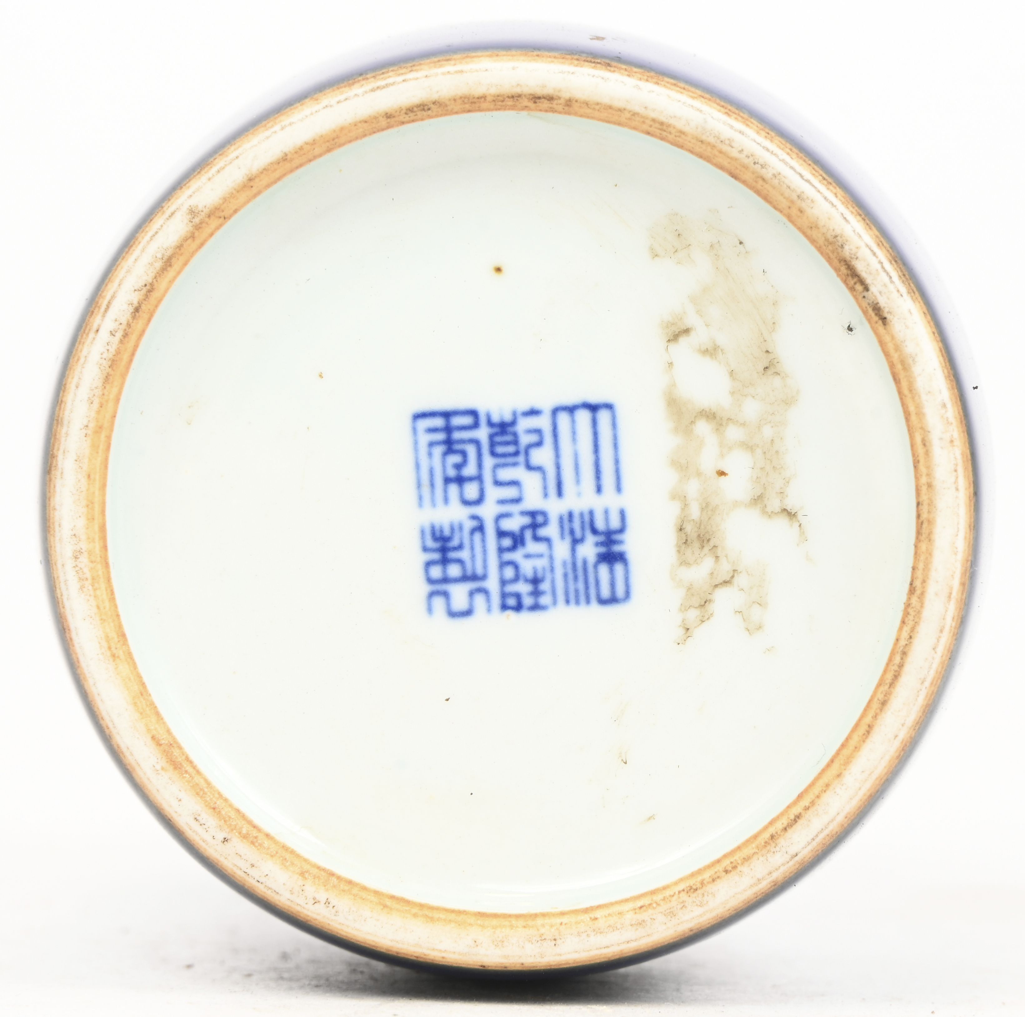 Set of 2 blue and white Chinese vases from the late Qing Dynasty, one with a star on the body. -