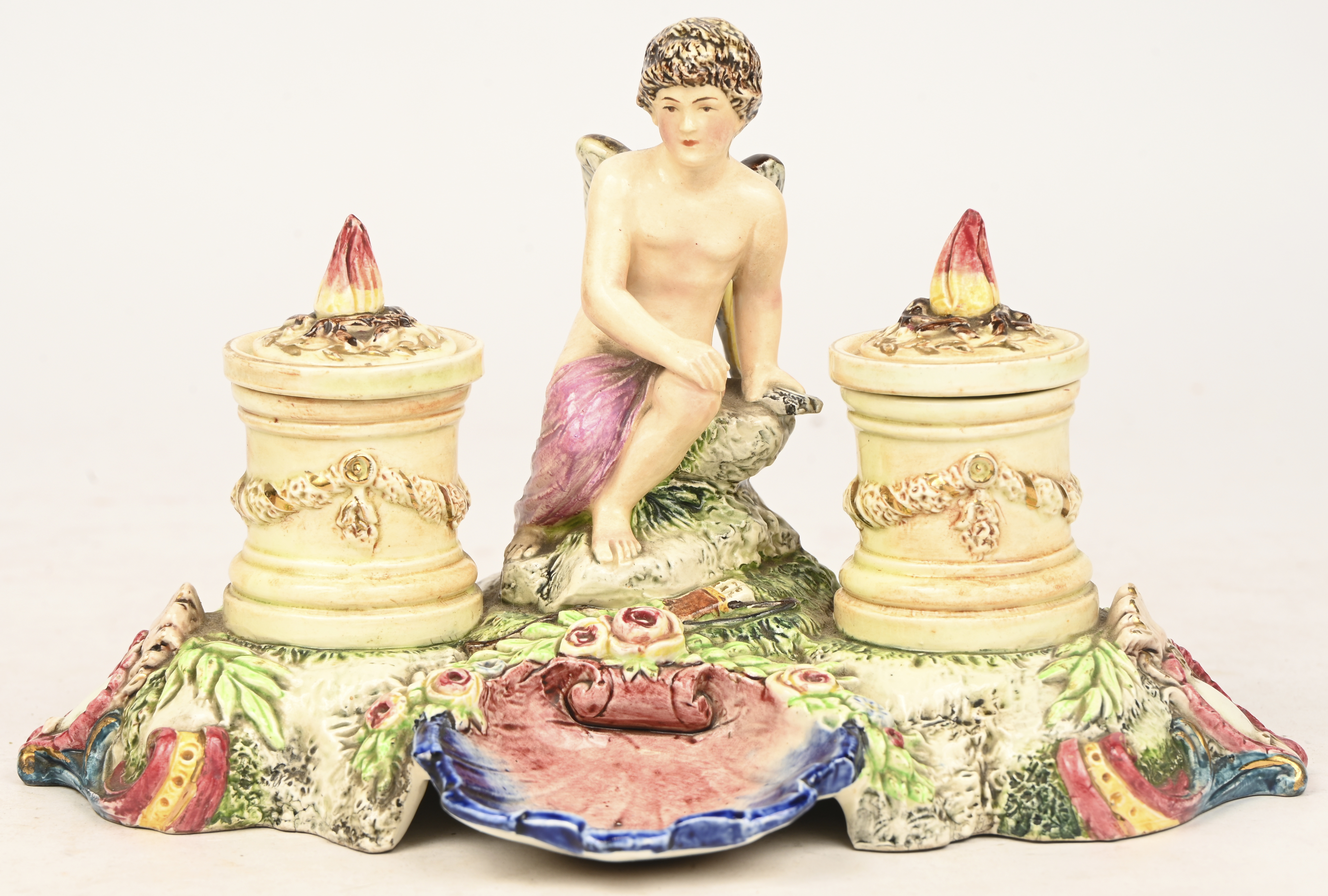 An antique crucifix of ebonized wood and porcelain.No longer availableOnline onlyDim. Hoogte 45Estimate: € 25 / 35 -