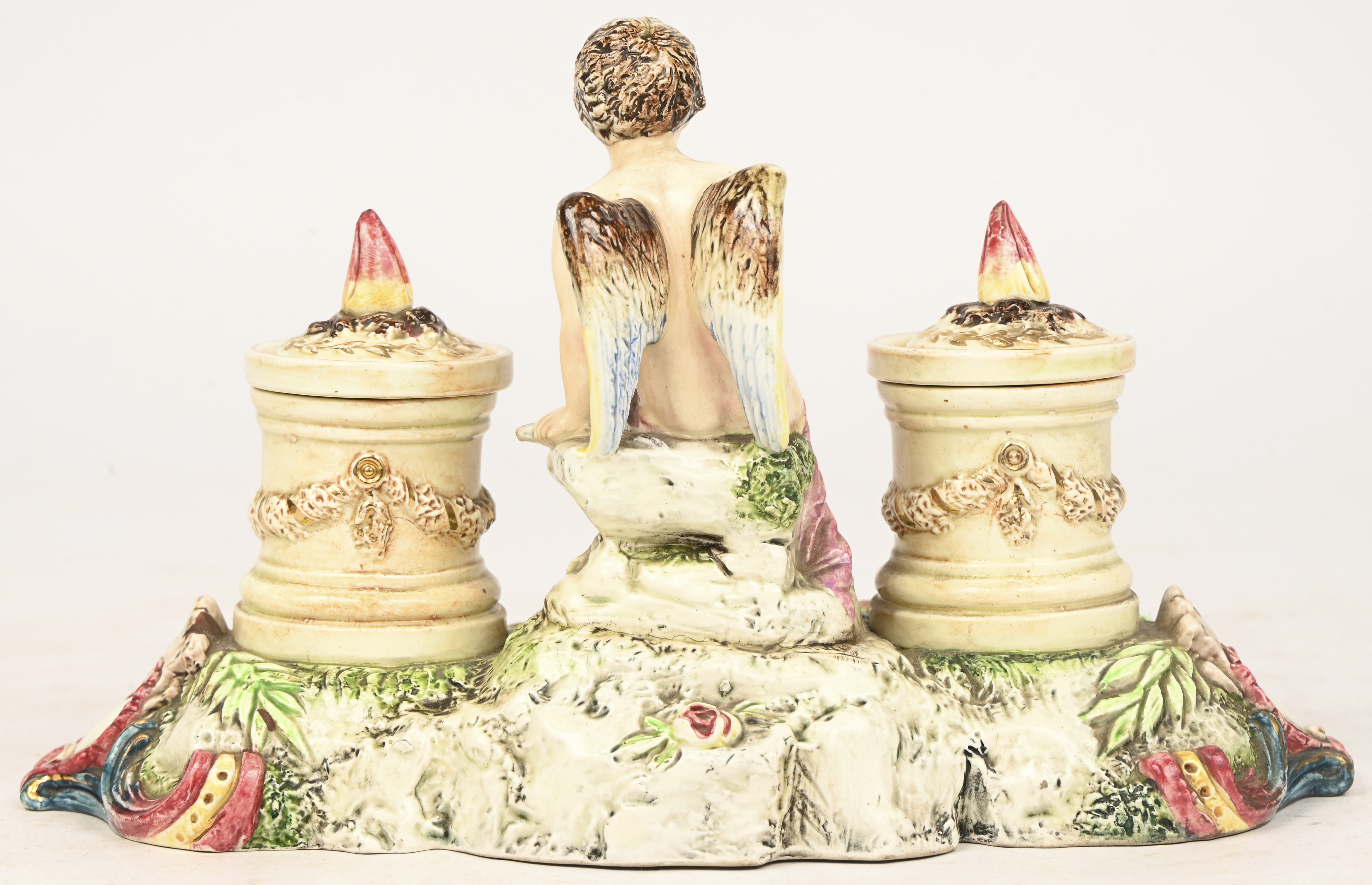 #280Een antiek kruisbeeld van geëboniseerd hout en porselein.