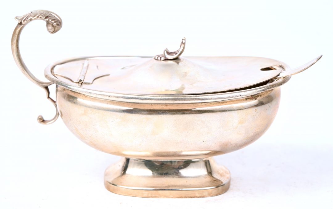 An Italian silver marmalade pot with spoon. Marked at the bottom, 800/1000.
