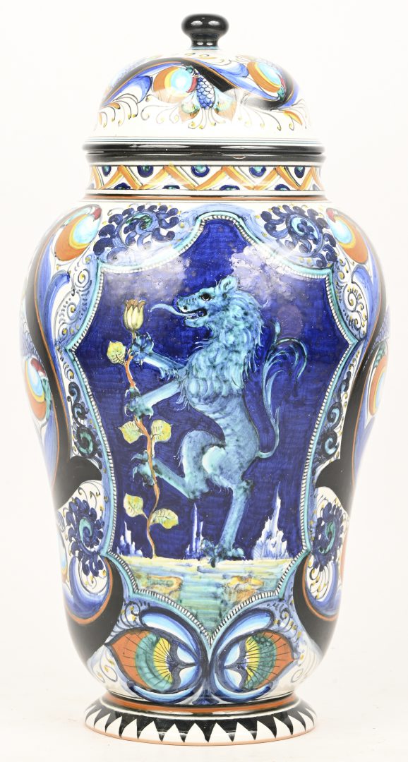 Een porseleinen vaas met pauwen in het decor, niet gemerkt.