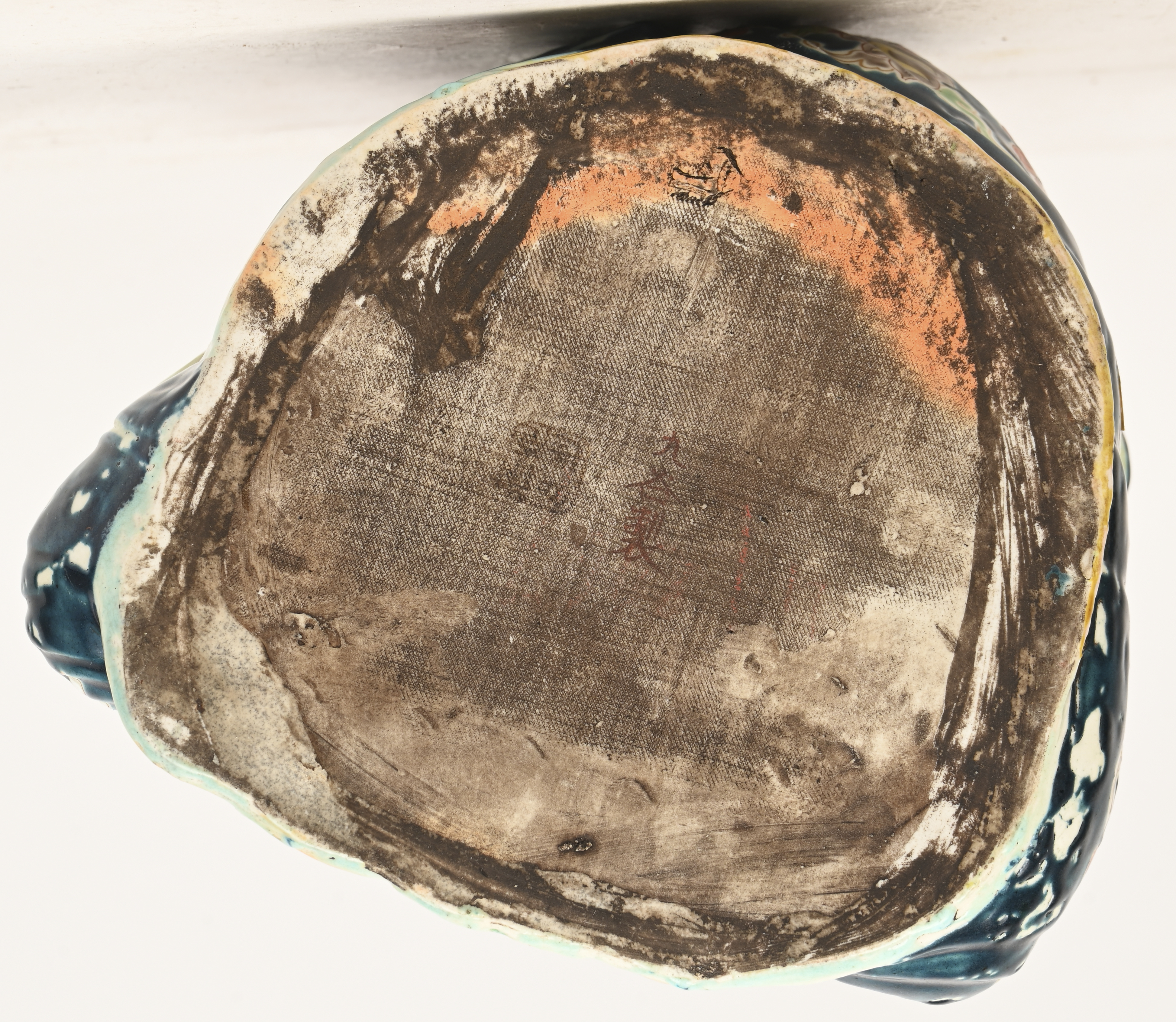 'Moonfish', a sculpture of multi-colored porcelain with gold accents. In the style of Eugenio Pattarino, not signed.