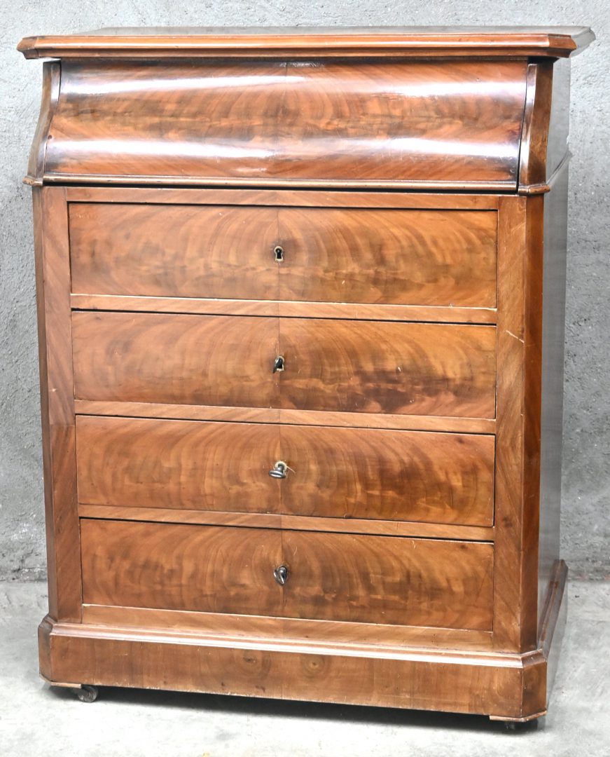 #396Een Chinese dressoir, 5 laden en 2 deuren, met bronzen beslag.
