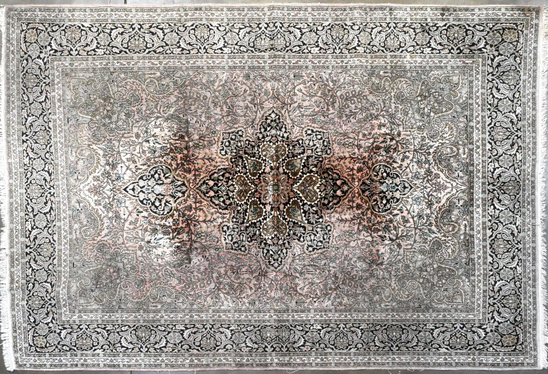 #625Een Chinees zijden Hereke tapijt met een floraal decor.